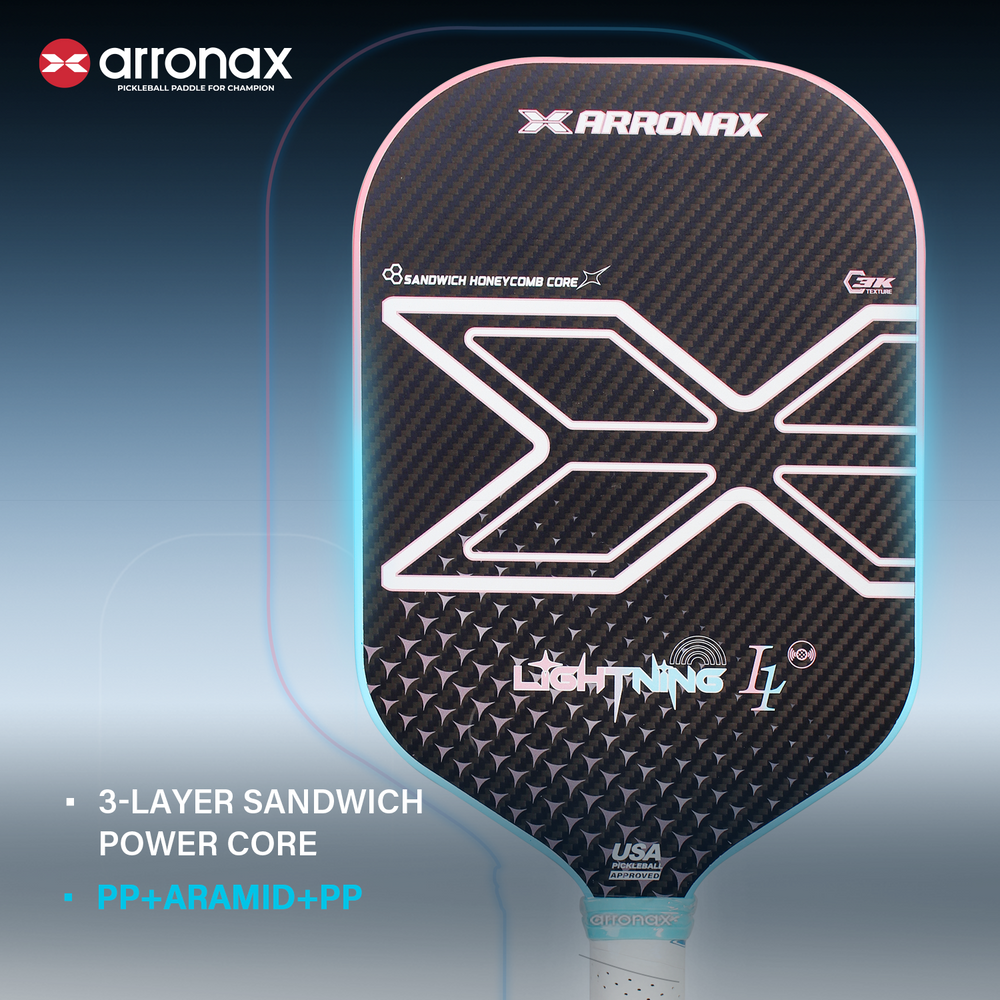 Elevate your game with the ARRONAX Lightning L1, a paddle engineered for power, precision, and durability. Designed for competitive players, the L1 combines advanced materials with a high-performance structure, delivering explosive shots with ultimate control.